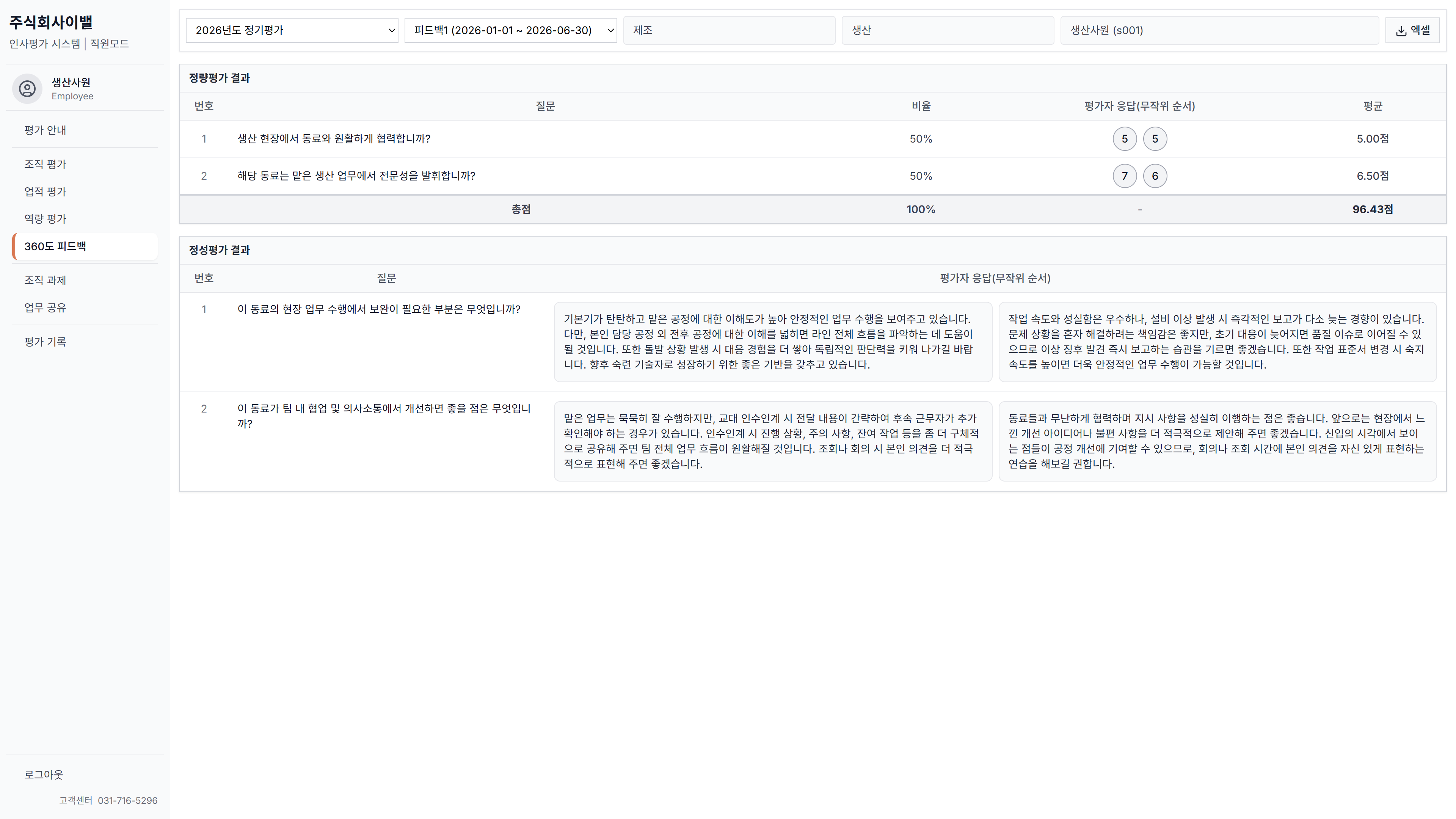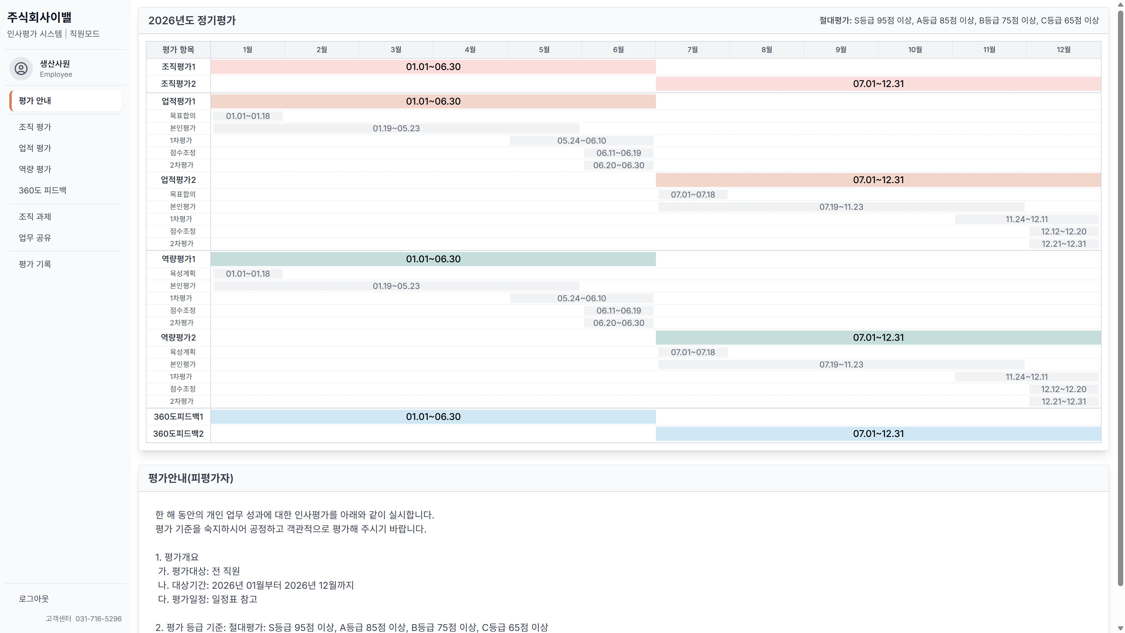 새로운 시스템에 대한 적응, 일회성 판단으로 인한 근거 부족, 절대평가 한계, 모두가 만족하지 못하는 인사평가의 문제점을 개선하였습니다.