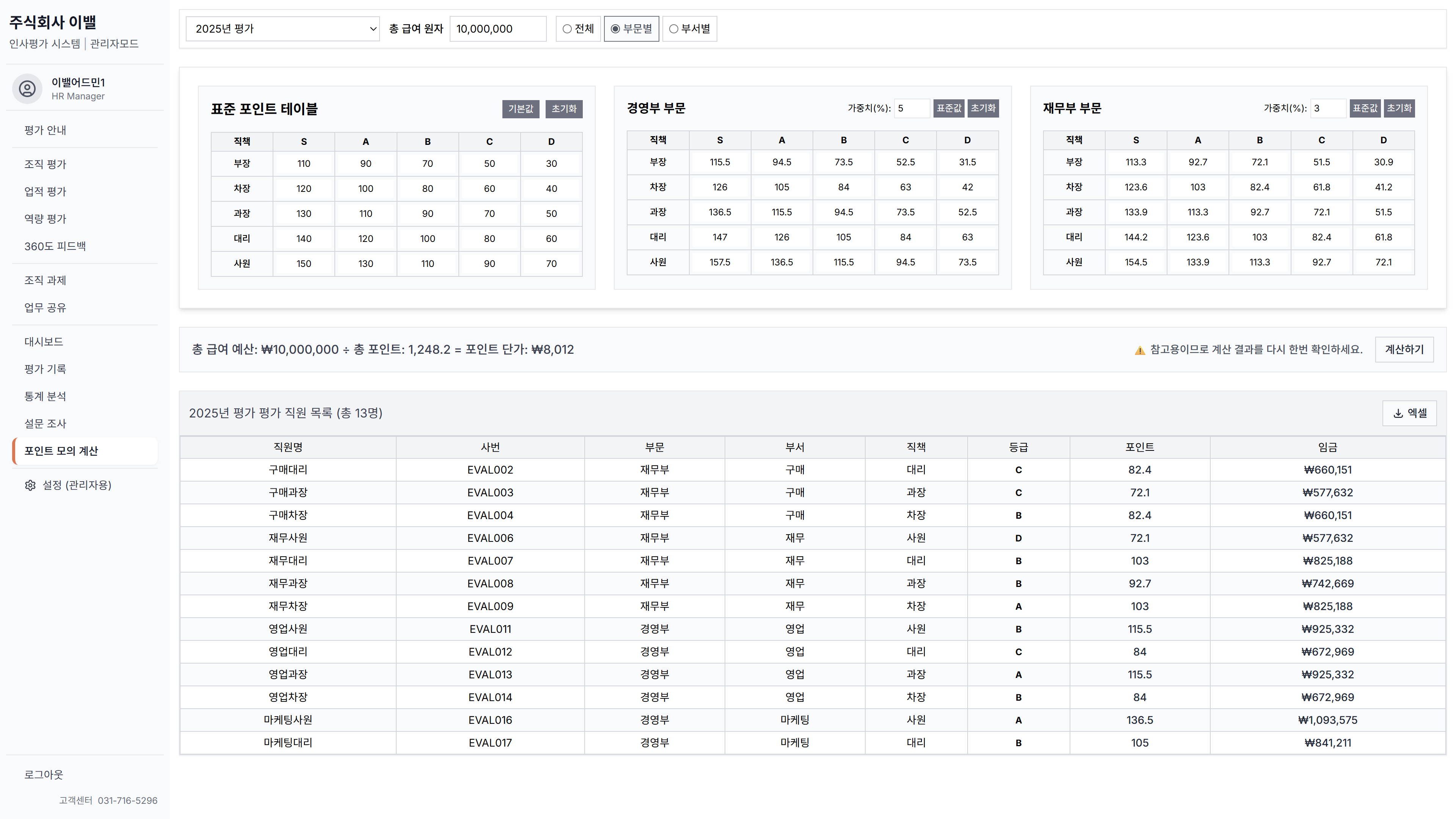 포인트제 임금시뮬레이션으로 절대평가의 예산 초과 문제를 해결할 수 있습니다.
