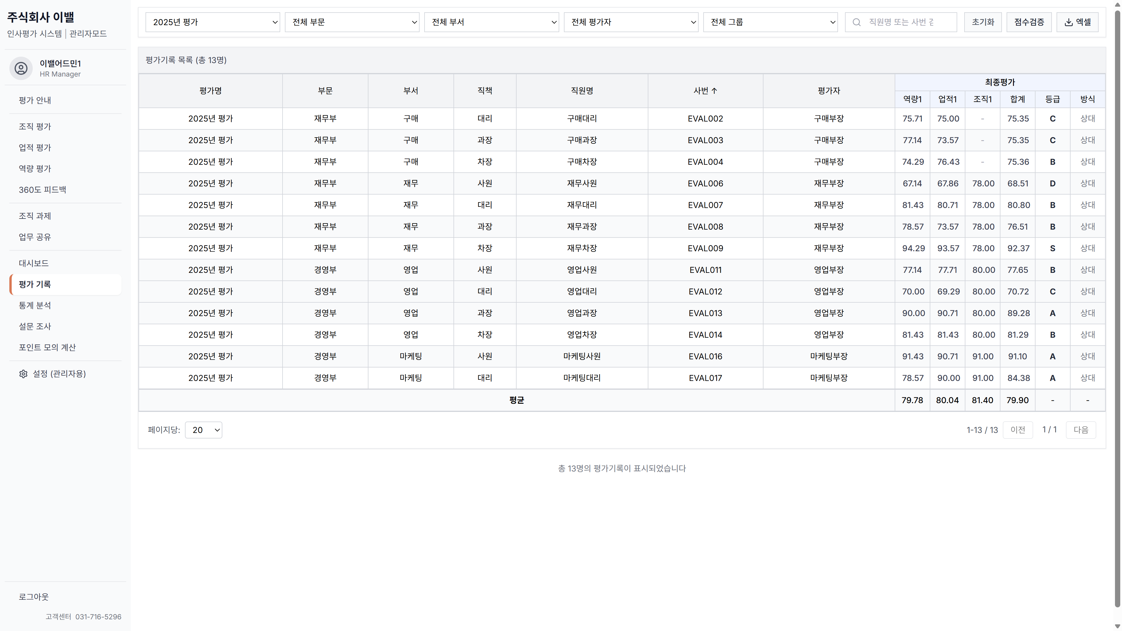 평가자는 객관적인 데이터를 바탕으로 공정하게 평가할 수 있습니다.